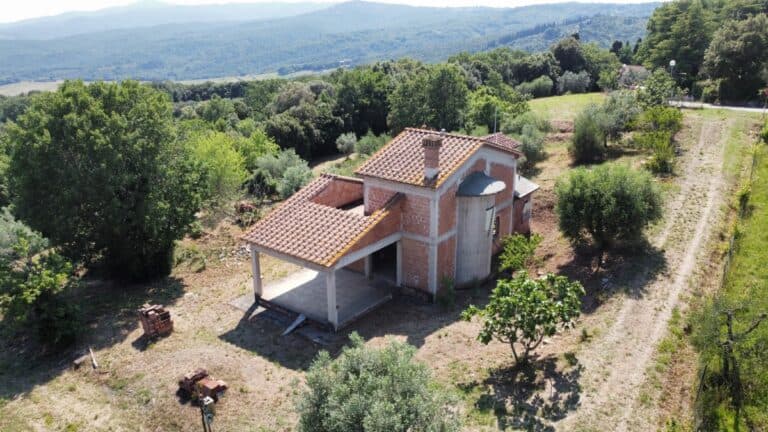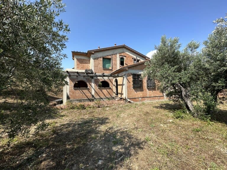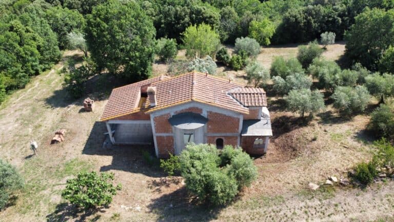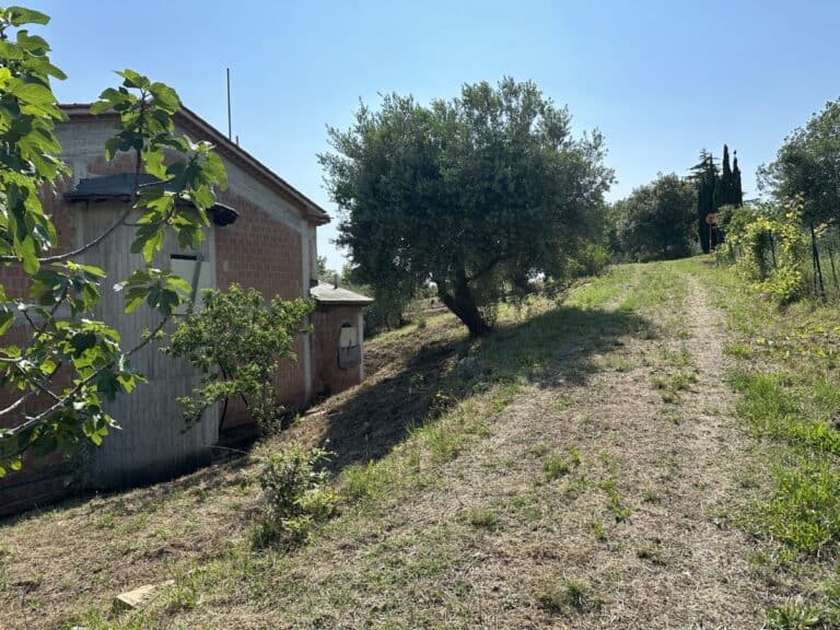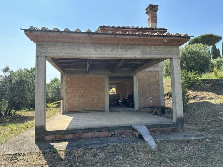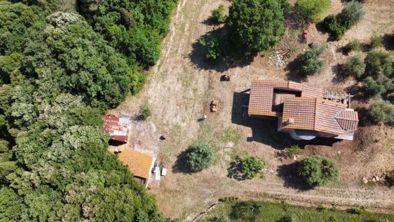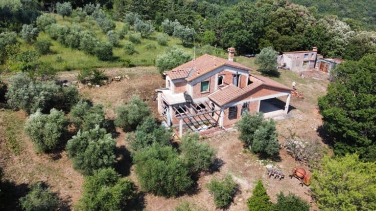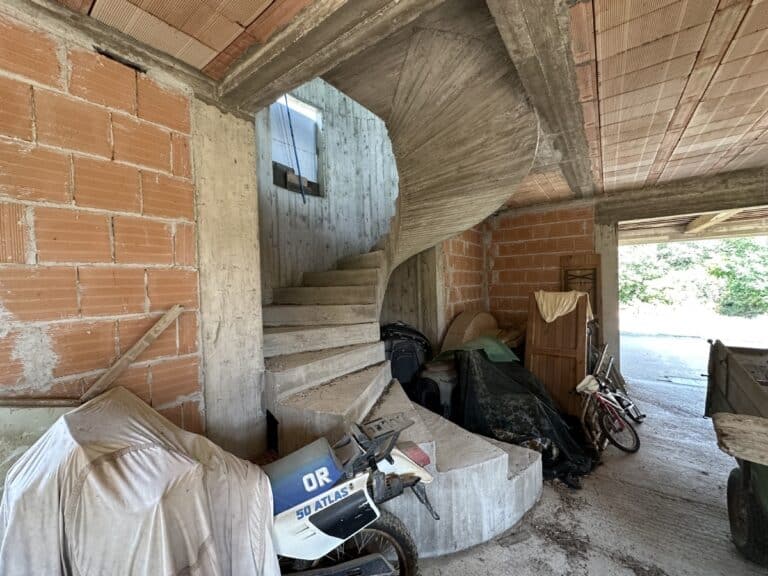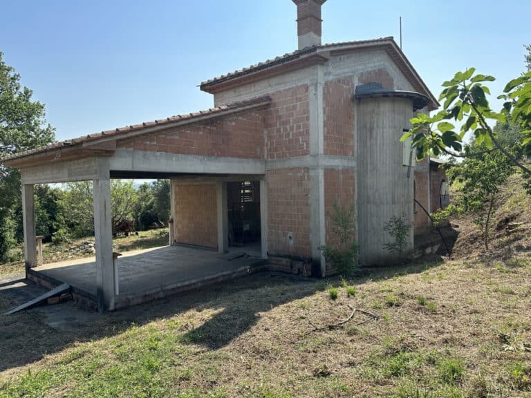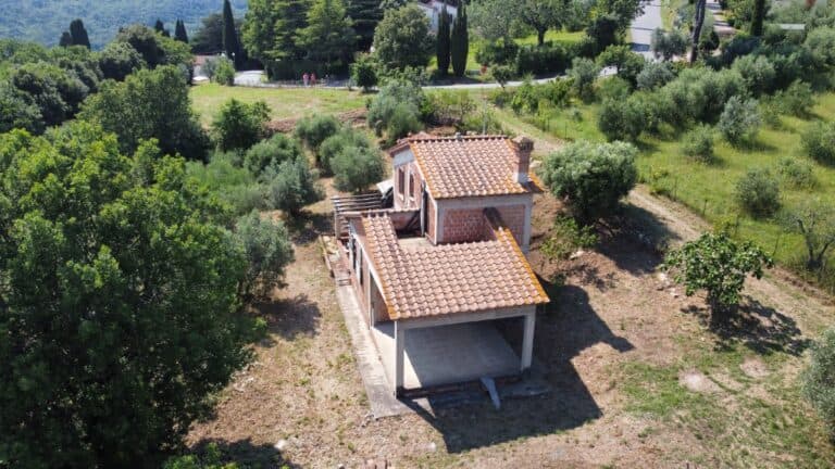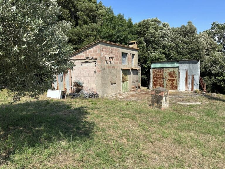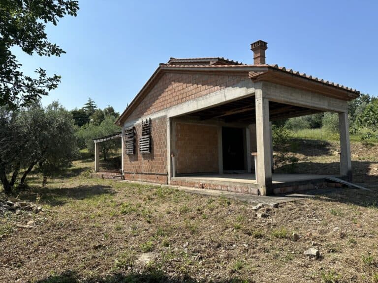 Das Haus wird in seinem jetzigen Zustand verkauft und bedarf noch einiger Arbeiten, um es fertig zu stellen. Das Anwesen ist von einem großen Grundstück von etwa einem Hektar umgeben, das zum Teil aus einem Olivenhain und zum Teil aus Wald besteht. Darauf befinden sich einige Lagerräume mit einer Gesamtfläche von 35 qm, die als Garagen genutzt werden können, aber auch zu einem komfortablen Gästehaus umgebaut werden können.