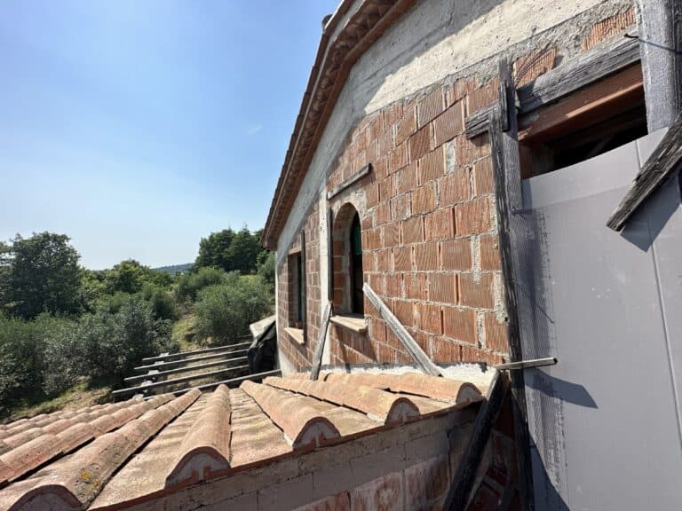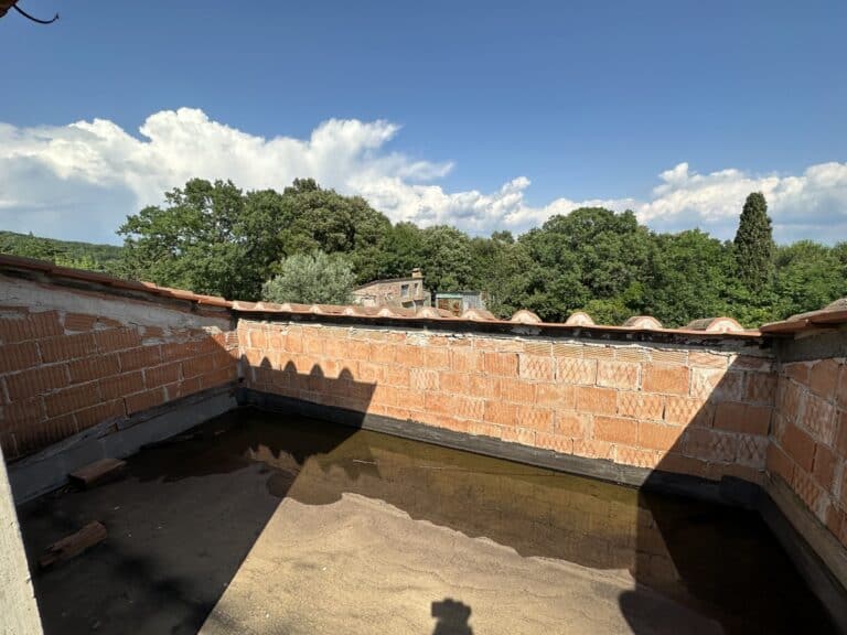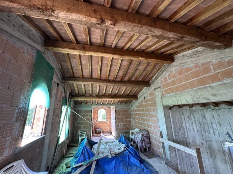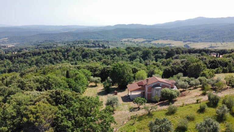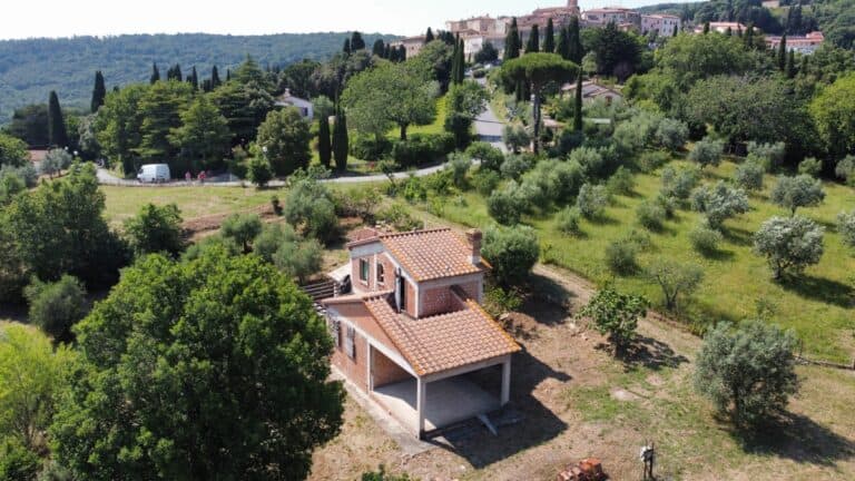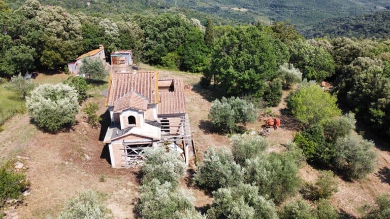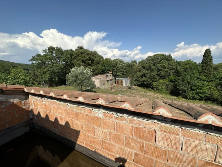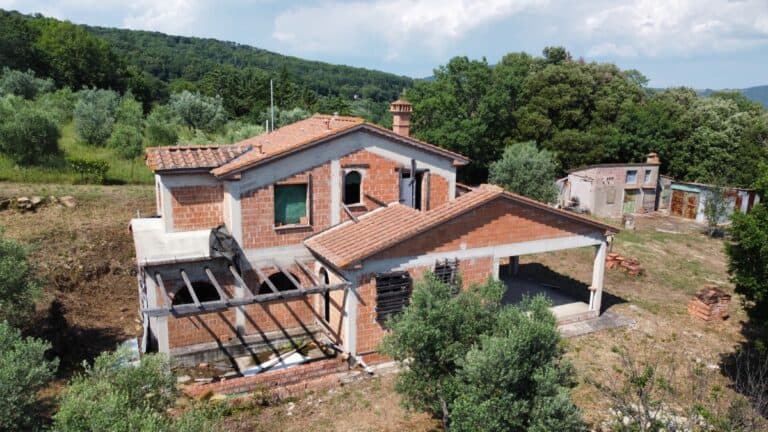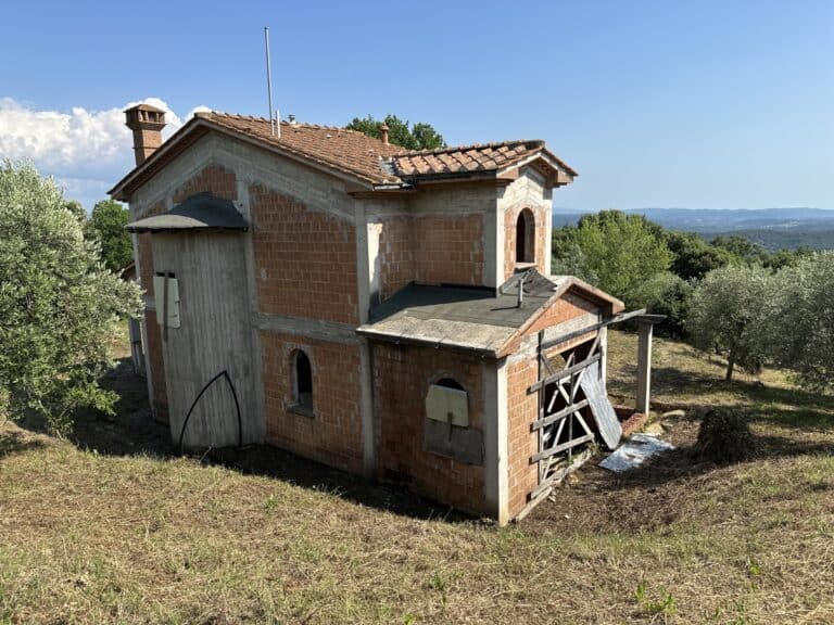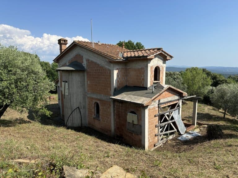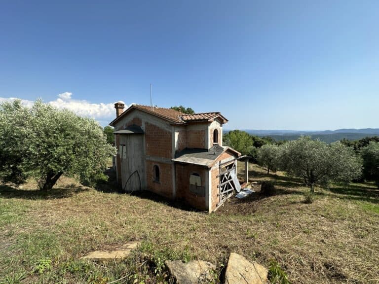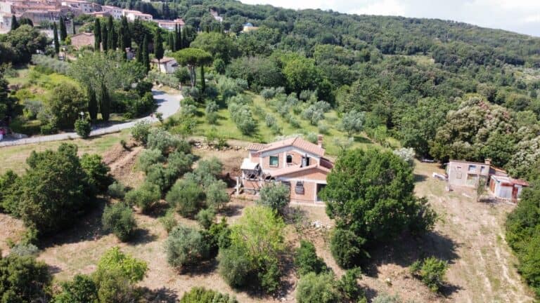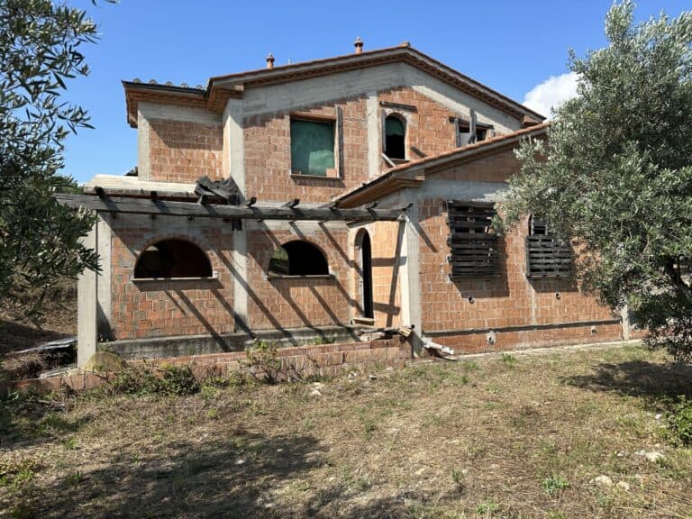 Das Haus wird in seinem jetzigen Zustand verkauft und bedarf noch einiger Arbeiten, um es fertig zu stellen. Das Anwesen ist von einem großen Grundstück von etwa einem Hektar umgeben, das zum Teil aus einem Olivenhain und zum Teil aus Wald besteht. Darauf befinden sich einige Lagerräume mit einer Gesamtfläche von 35 qm, die als Garagen genutzt werden können, aber auch zu einem komfortablen Gästehaus umgebaut werden können.