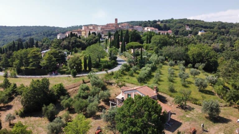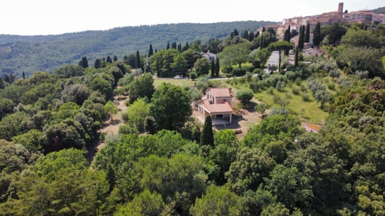 Nicht weit vom Zentrum des hübschen Dorfes Monteverdi Marittimo entfernt, freuen wir uns, auf dem Markt eine kleine Villa von etwa 135 qm mit Grundstück zu präsentieren. Die kleine Villa erstreckt sich über zwei Etagen und besteht im Erdgeschoss aus einem großen Wohnbereich mit Küche und Essbereich und einem Badezimmer. Ein großer Portikus von ca. 30qm und eine Pergola erweitern den Wohnbereich im Sommer. Eine elegante Wendeltreppe führt in das Obergeschoss, in dem sich zwei Schlafzimmer und ein Badezimmer befinden. Das Hauptschlafzimmer hat Zugang zu einer Taschenterrasse mit einem wunderschönen Blick auf das umliegende Panorama und die Insel Elba. Im Untergeschoss vervollständigt eine große Taverne von 25 qm das Anwesen.