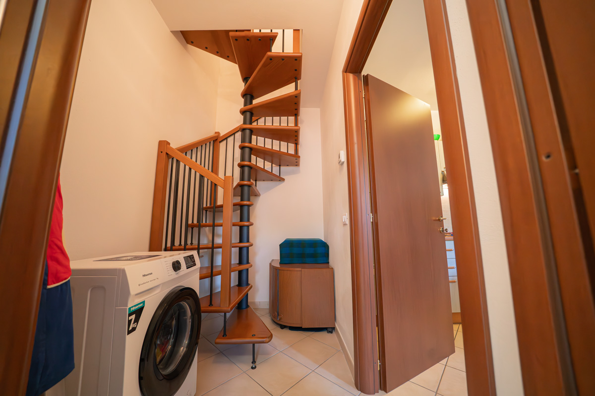 - Design su due livelli: Un accogliente living di 42mq che si sviluppa verso l’alto grazie a una scala a chiocciola, conducendo a una mansarda vivibile di 38mq. Qui troverai due locali versatili, ideali come camere da letto o studio, completi di secondo bagno e cabina armadio.