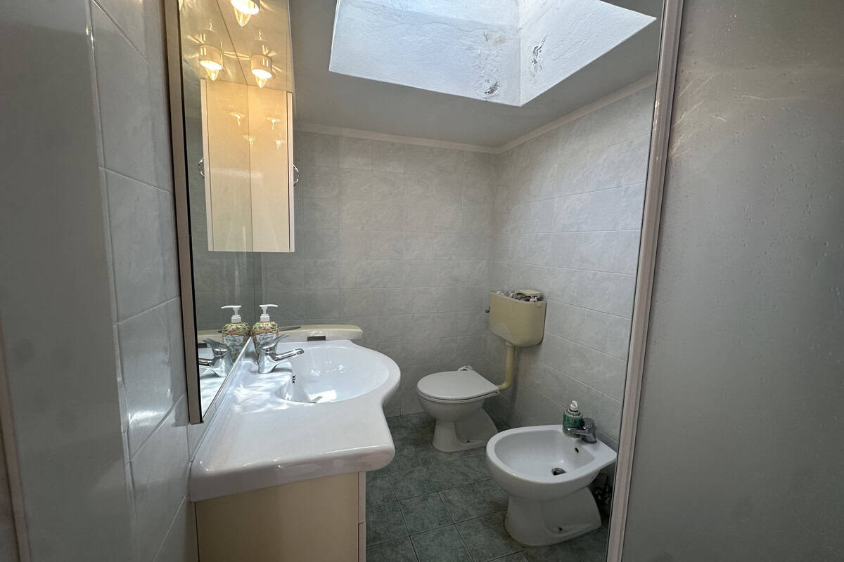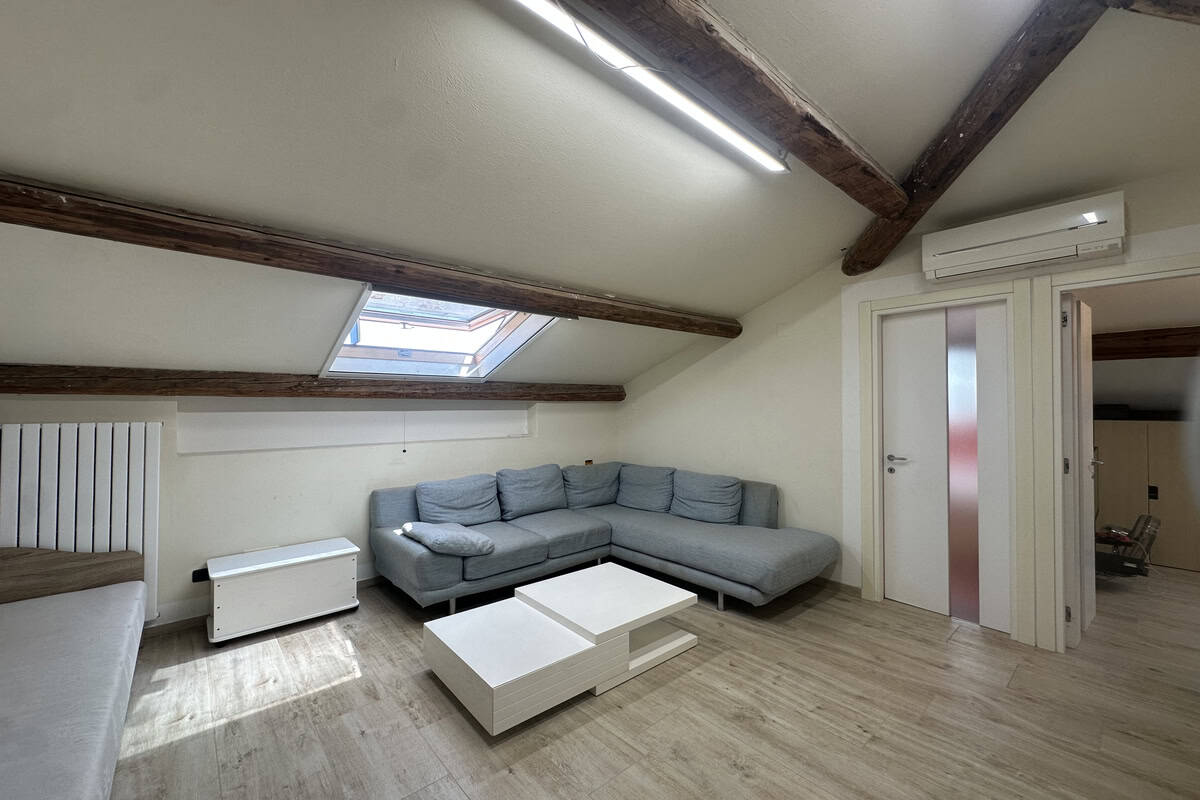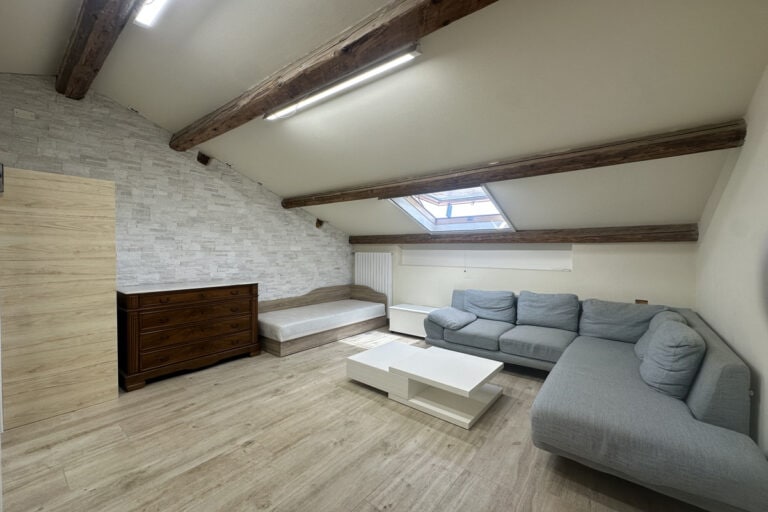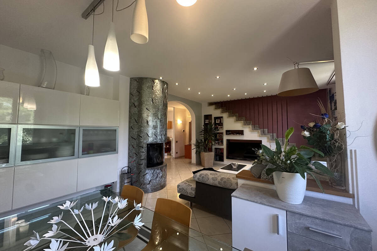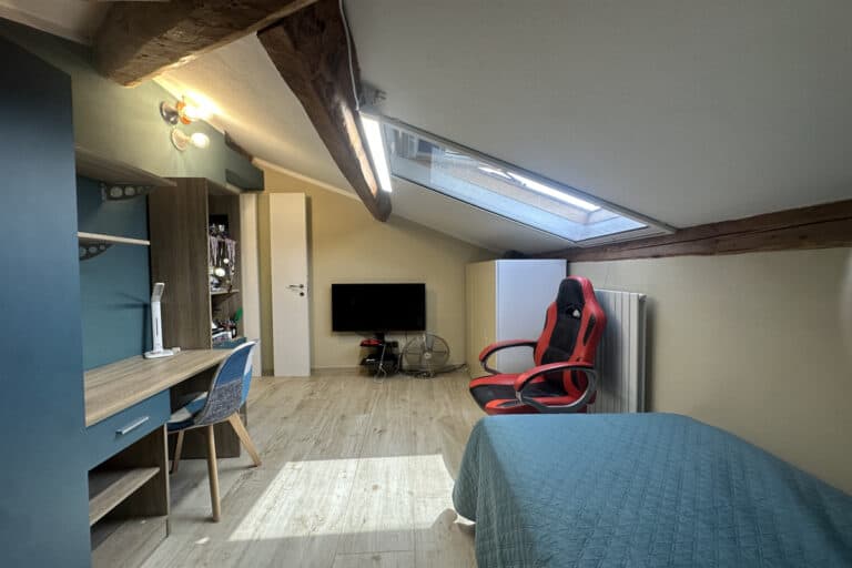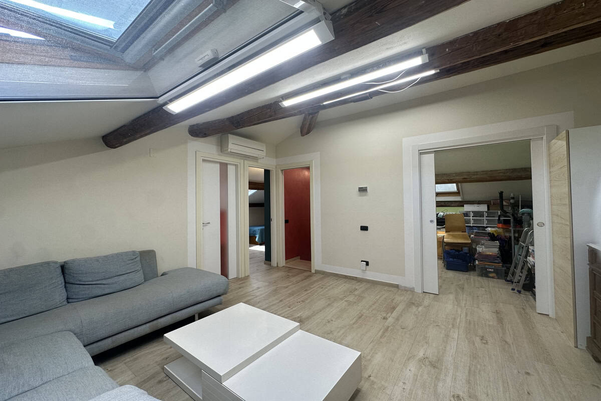 Soggiorno con caminetto, cucina abitabile con veranda adibita a lavanderia, camera matrimoniale, cameretta e bagno con doccia. Tramite una scala si accede alla mansarda regolarmente accatastata composta da salottino, camera da letto, ulteriore camera/studio e bagno con vasca.