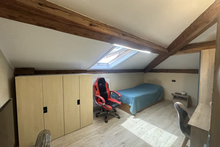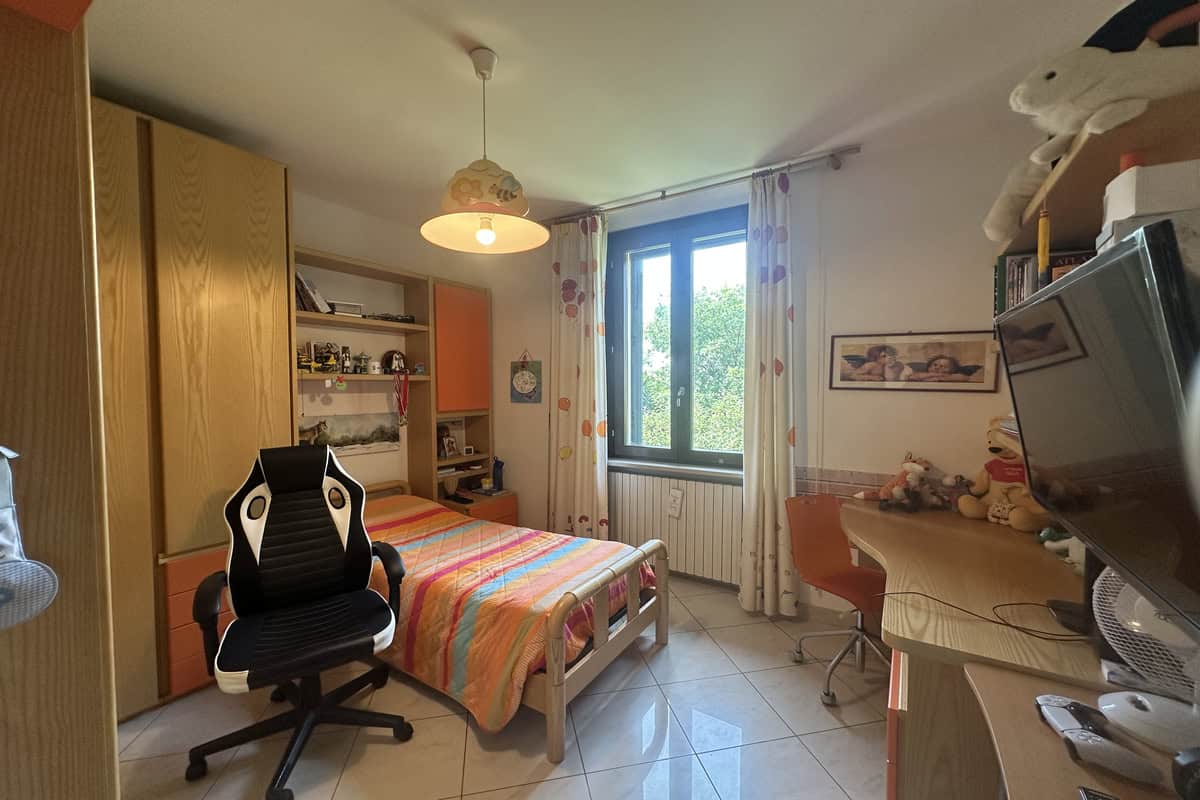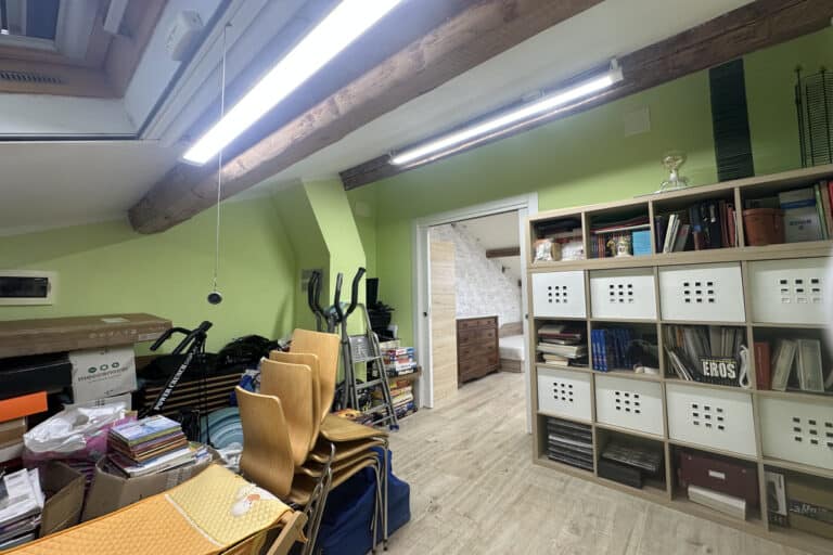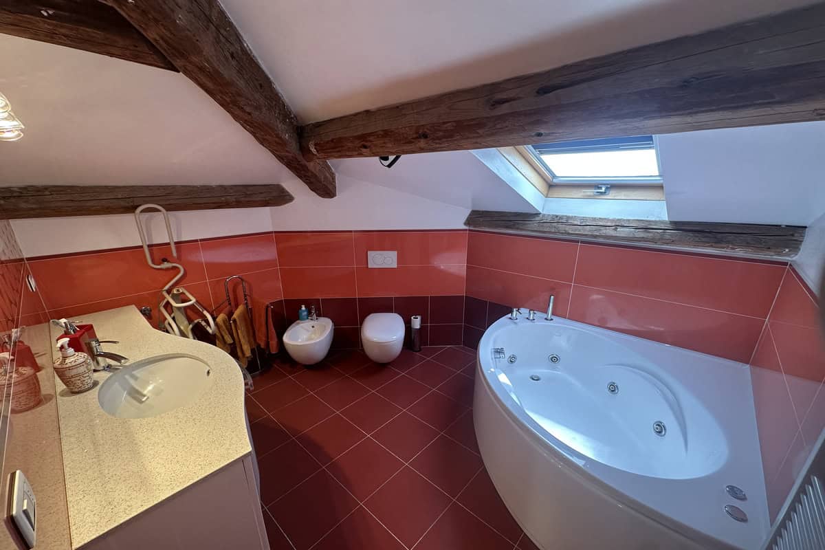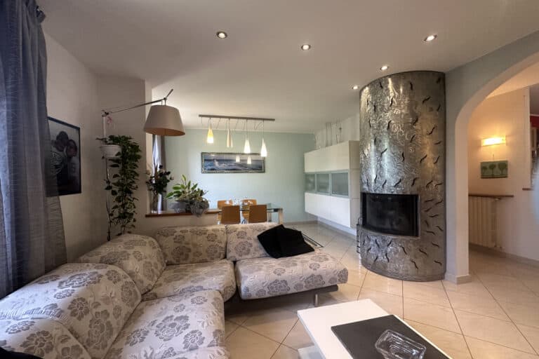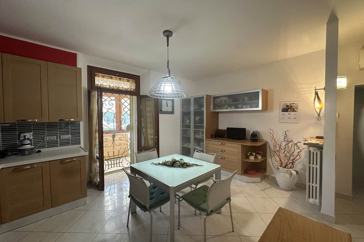 Soggiorno con caminetto, cucina abitabile con veranda adibita a lavanderia, camera matrimoniale, cameretta e bagno con doccia. Tramite una scala si accede alla mansarda regolarmente accatastata composta da salottino, camera da letto, ulteriore camera/studio e bagno con vasca.