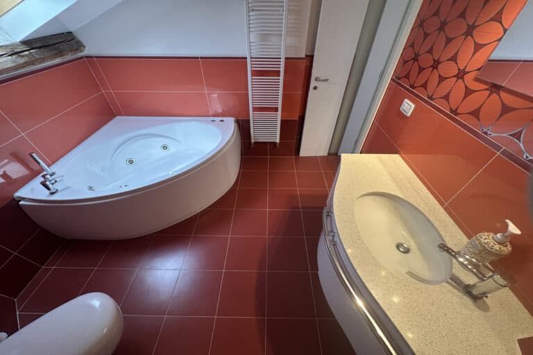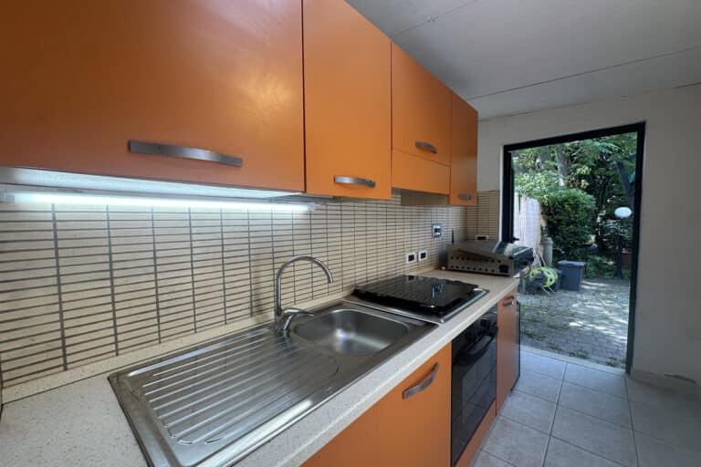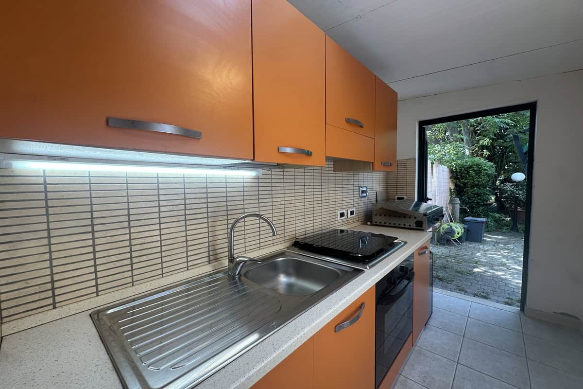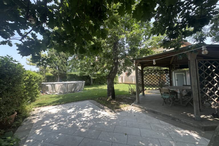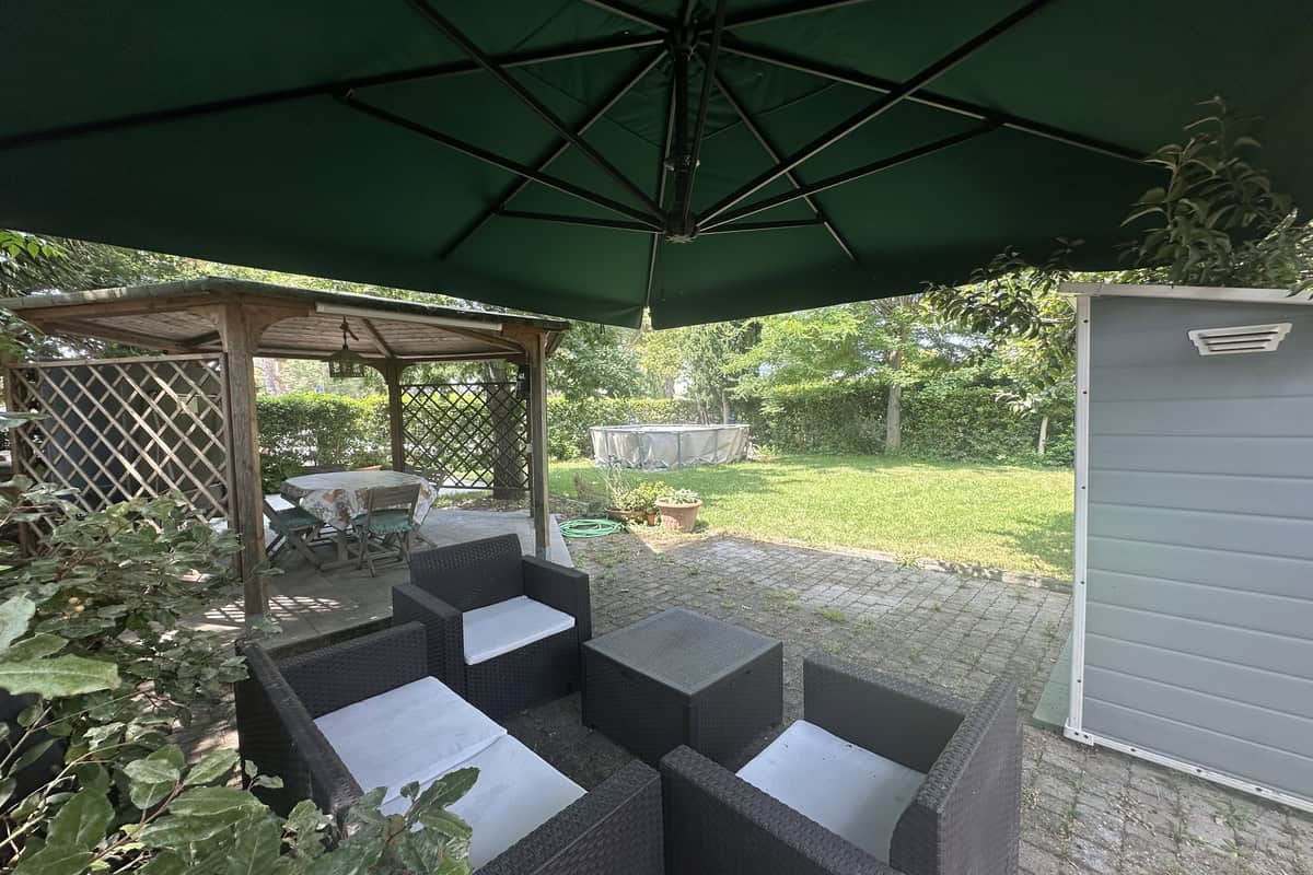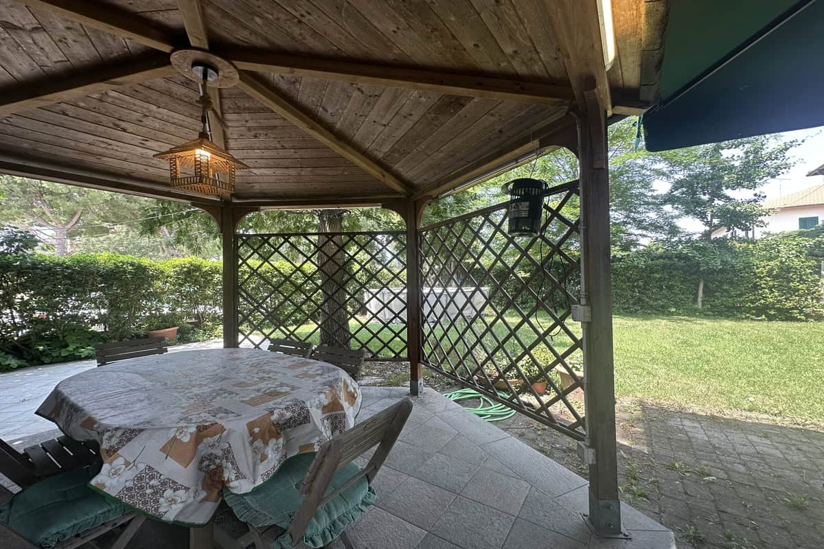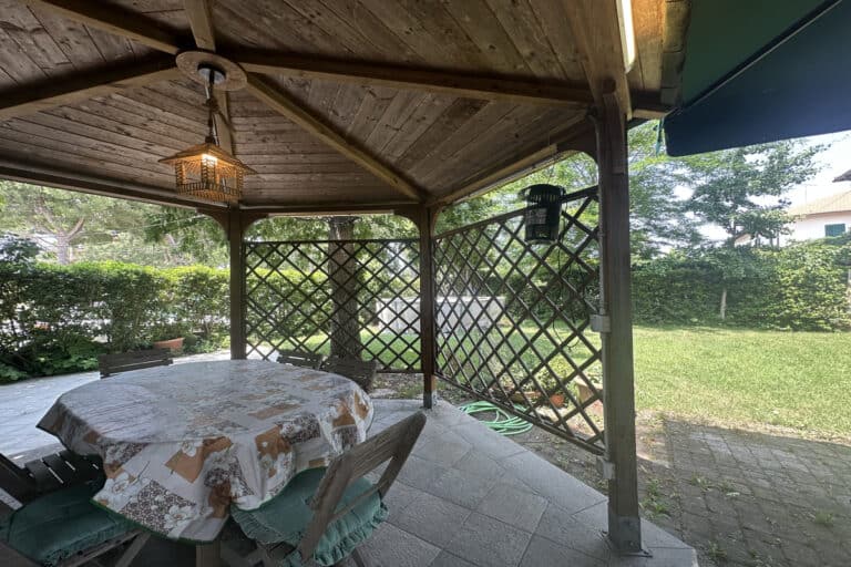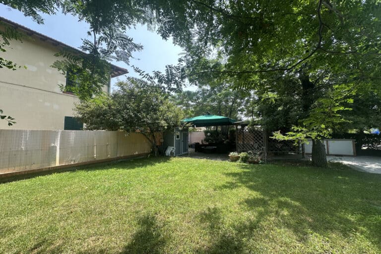 Completano la proprietà un locale al piano terra con seconda cucina e bagno, oltre ad un ampio giardino di 220mq con pergola.