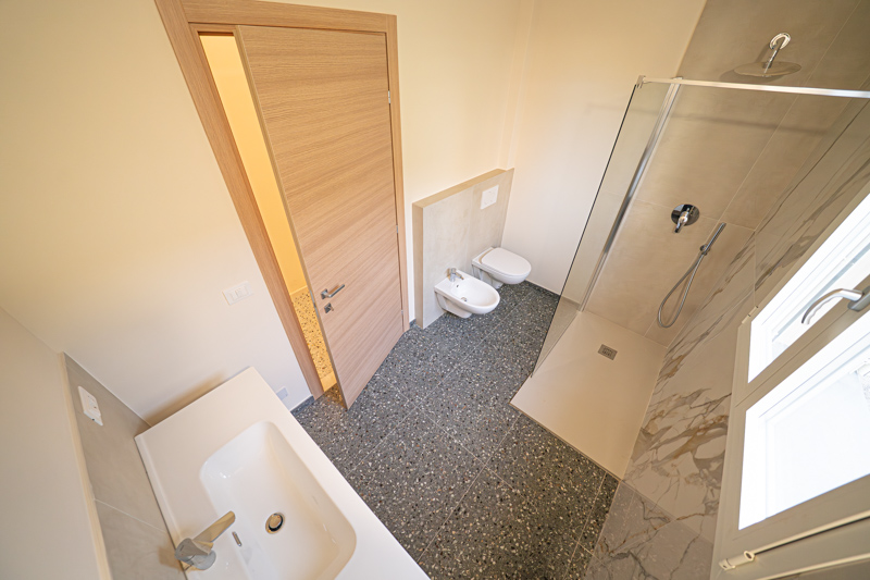• Bagno da Sogno: Spazioso, finestrato, dotato di sanitari sospesi e una moderna doccia walk-in.