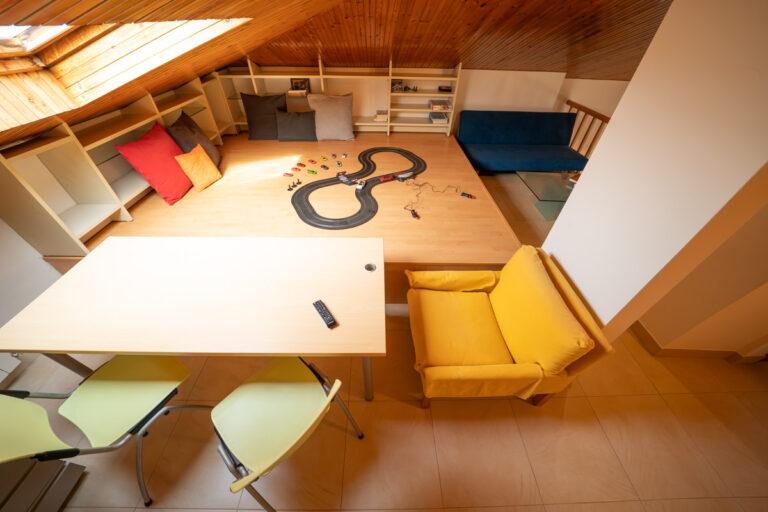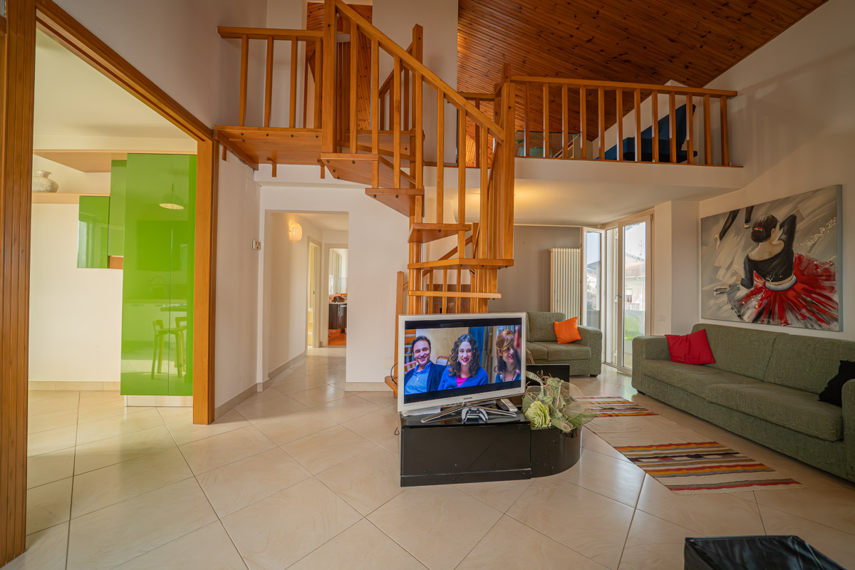 - L’Angolo del Genio: Salendo l’elegante scala d’arredo, scoprirai una mansarda di 29 mq affacciata sul soggiorno. È il tuo nuovo ufficio per lo smart working, l’area giochi protetta per i tuoi figli o quell’angolo lettura che hai sempre desiderato.