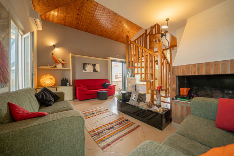 Il cuore pulsante della casa è la zona living: un salone accogliente impreziosito da un camino che promette serate indimenticabili in inverno, e un affaccio diretto sul terrazzo, il set perfetto per i tuoi aperitivi al tramonto.