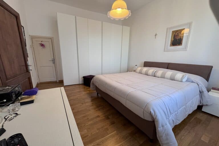 Al piano primo la camera padronale con bagno ensuite è la stanza privata per eccellenza della casa, lo spazio più intimo dove potrai trovare riposo, custodire i tuoi oggetti personali e magari ascoltare la tua musica preferita.