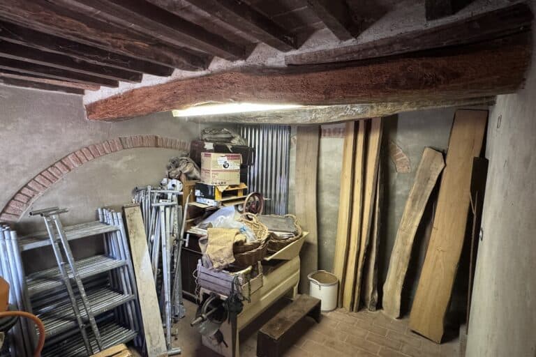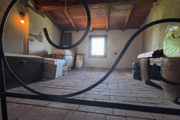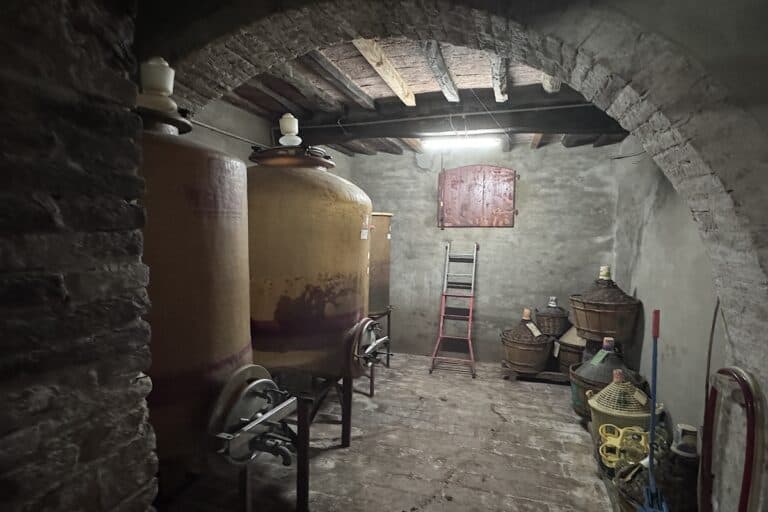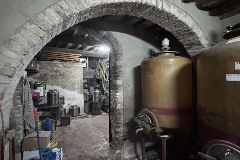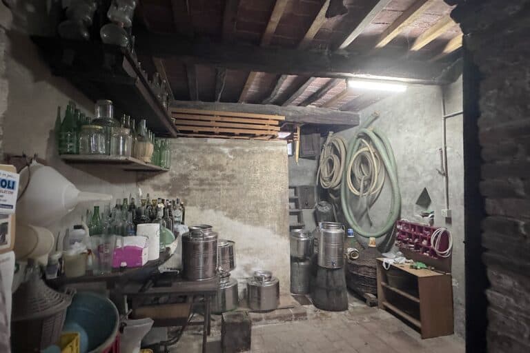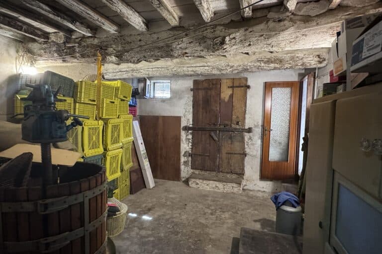 Questo rustico su tre livelli è composto al piano terra da un locale cantina e da due locali una volta adibiti alla vinificazione , infatti è ancora presente un vecchio tino.
