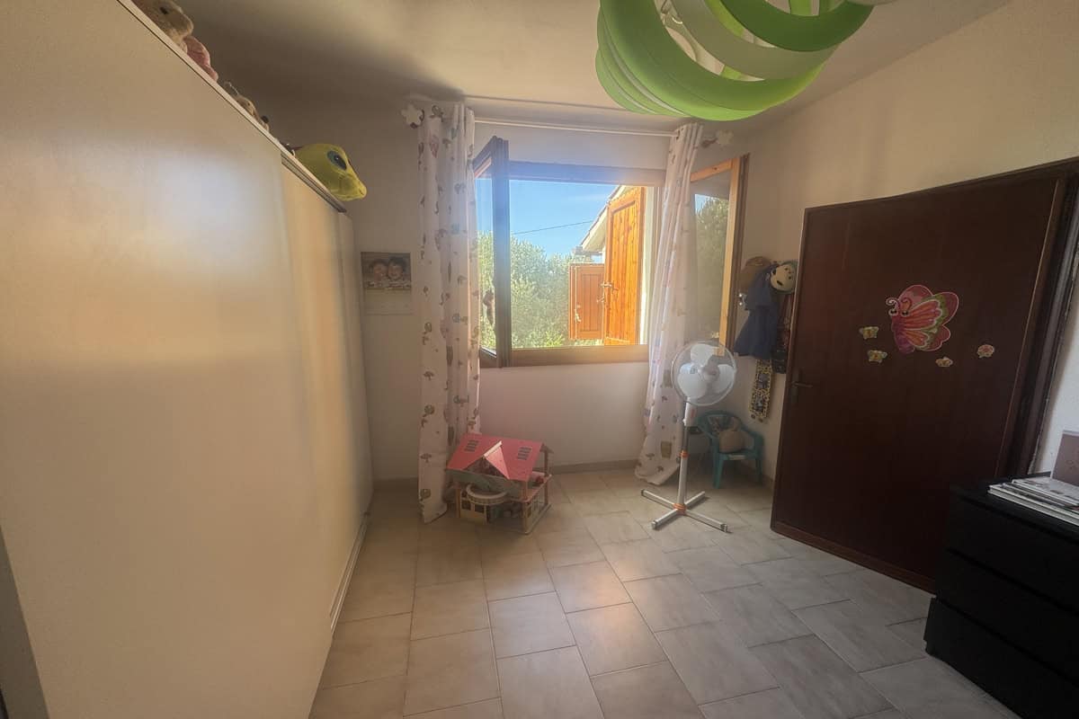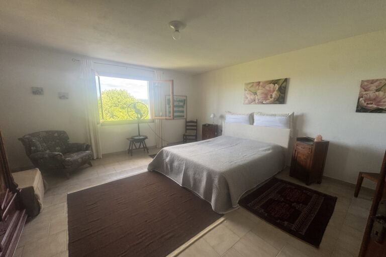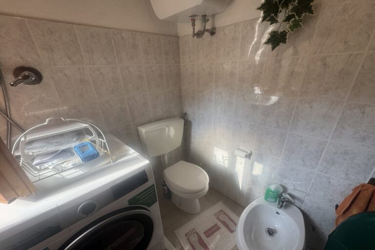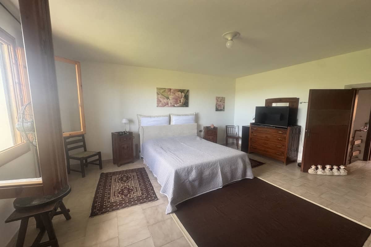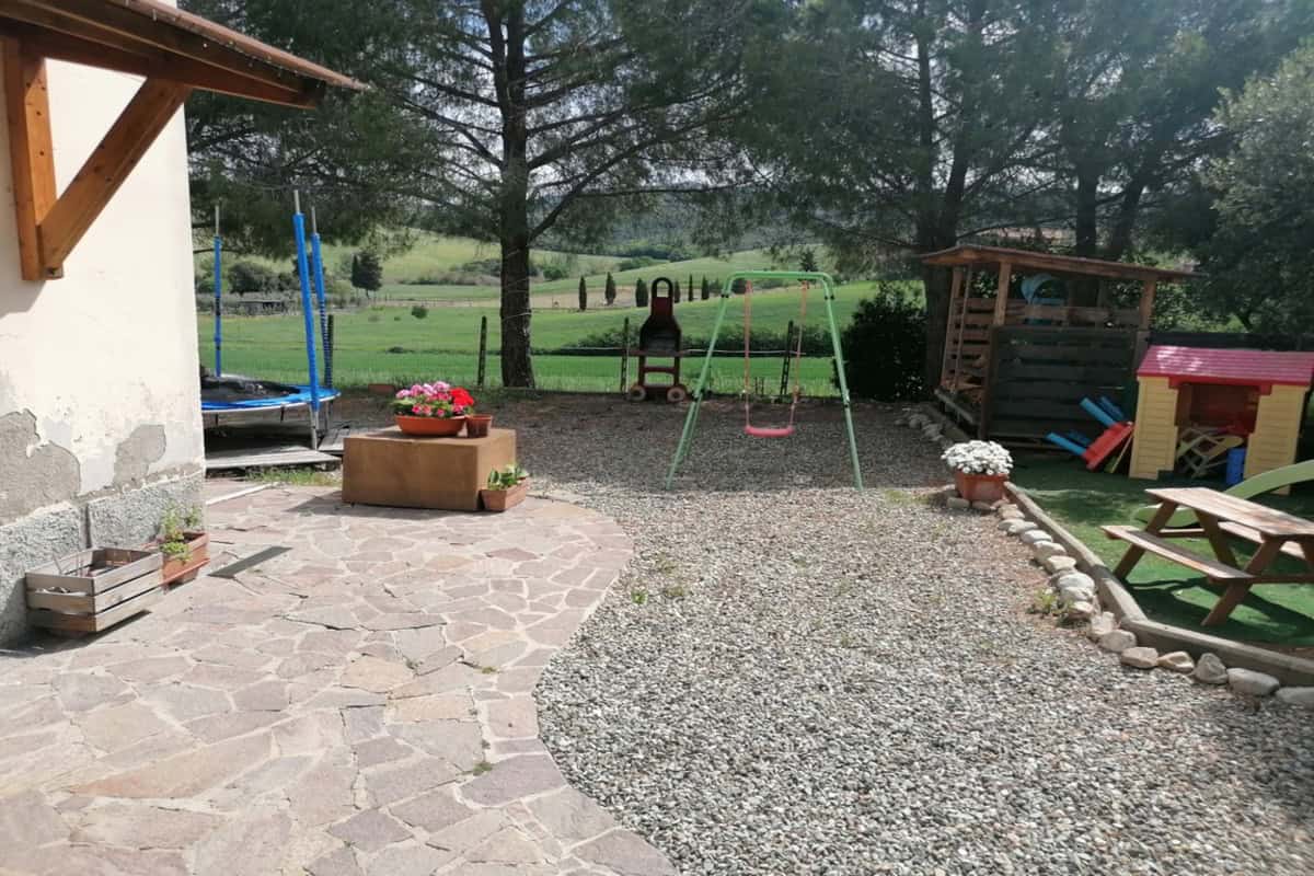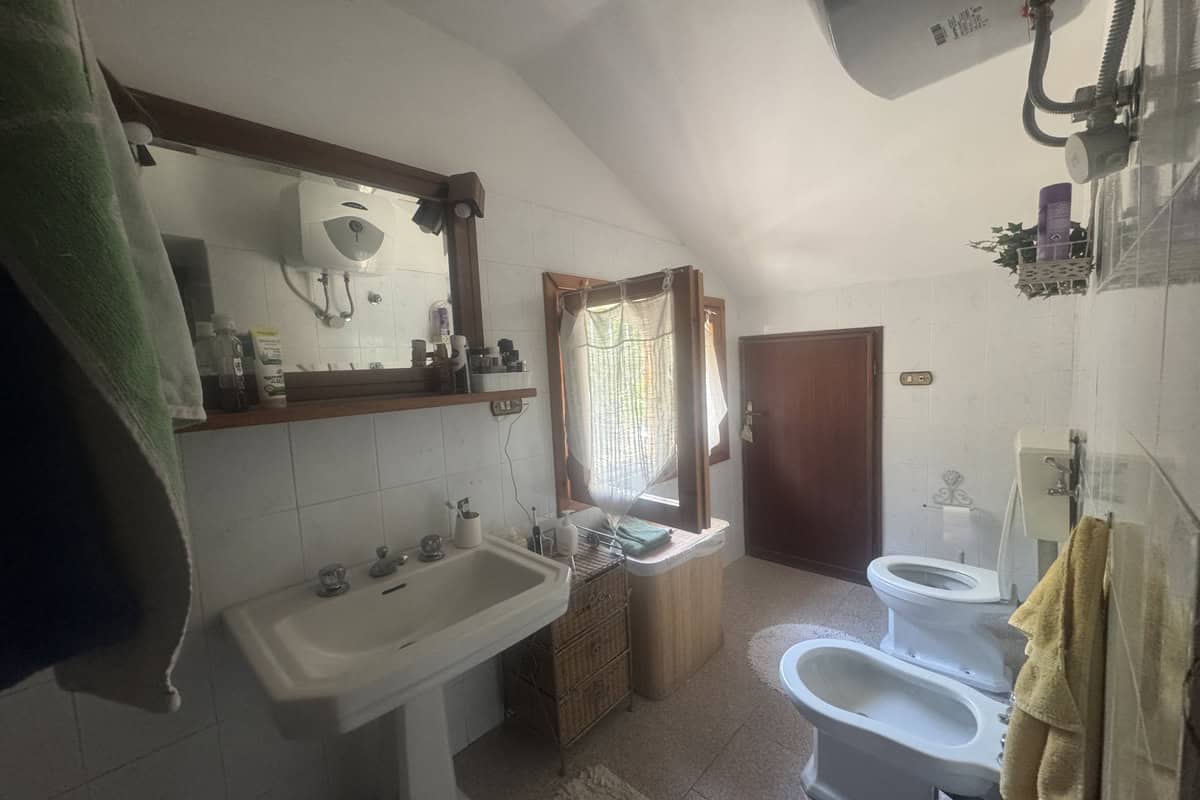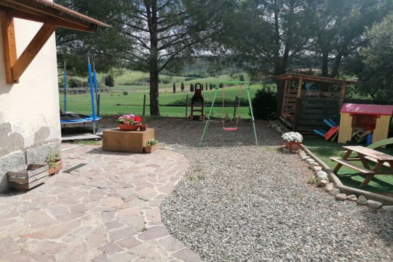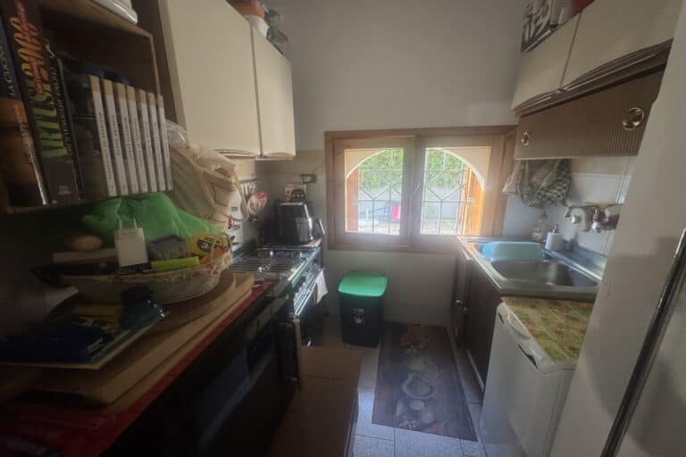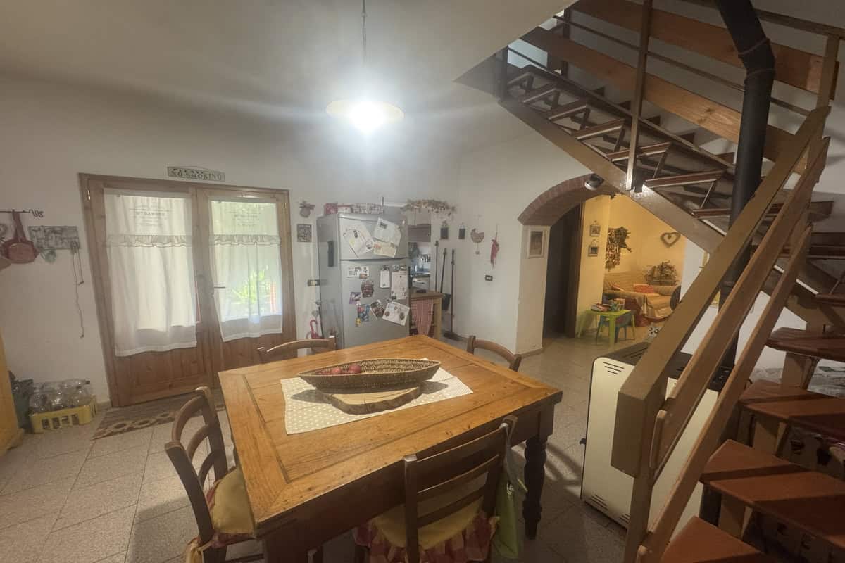Completa la proprietà un ampio giardino di 700mq con pergola e una ventina di piante d’ulivo. L’ingresso dal cancello è comune.
