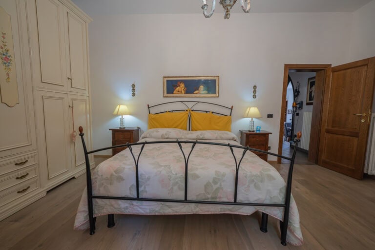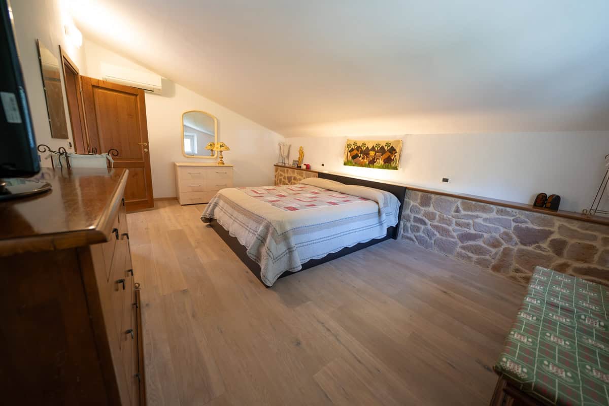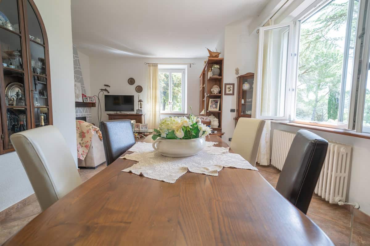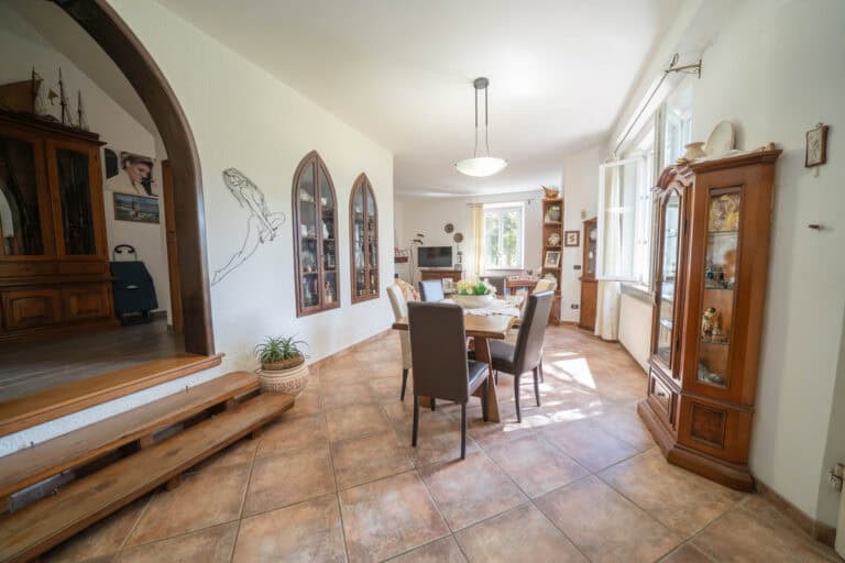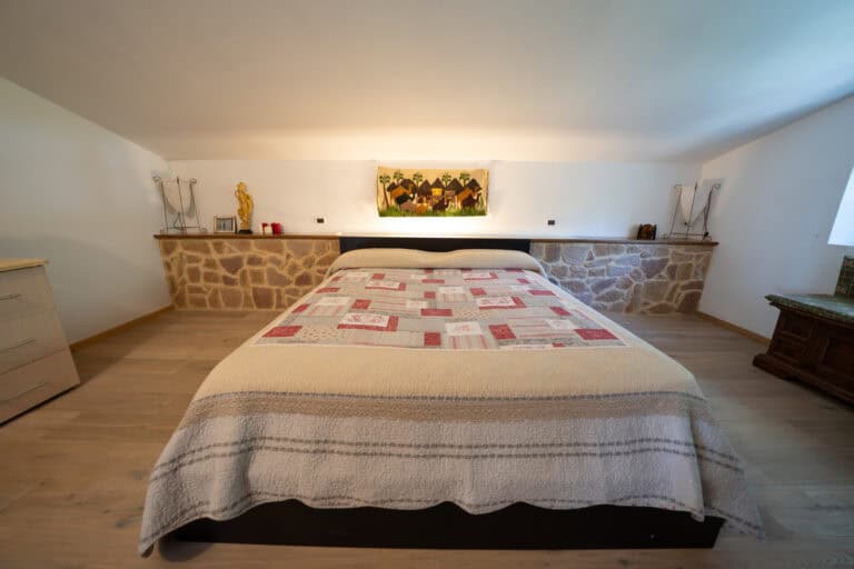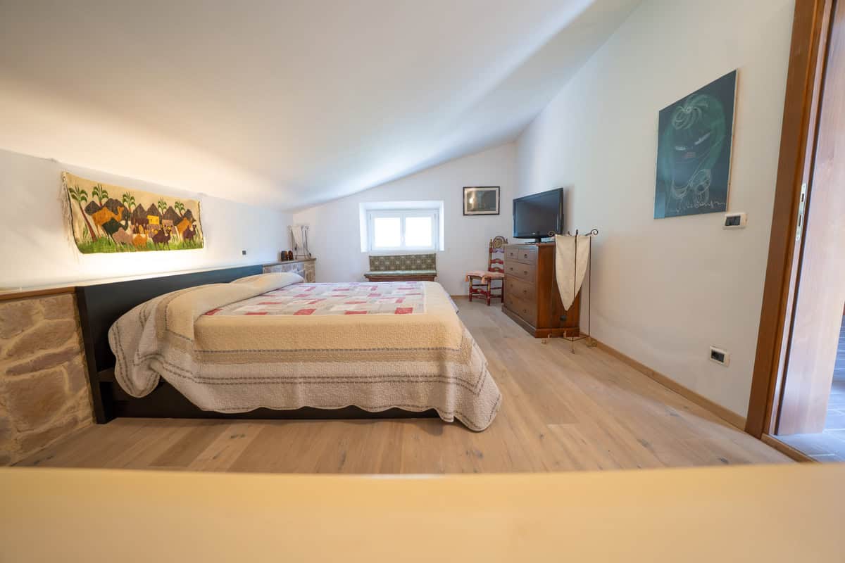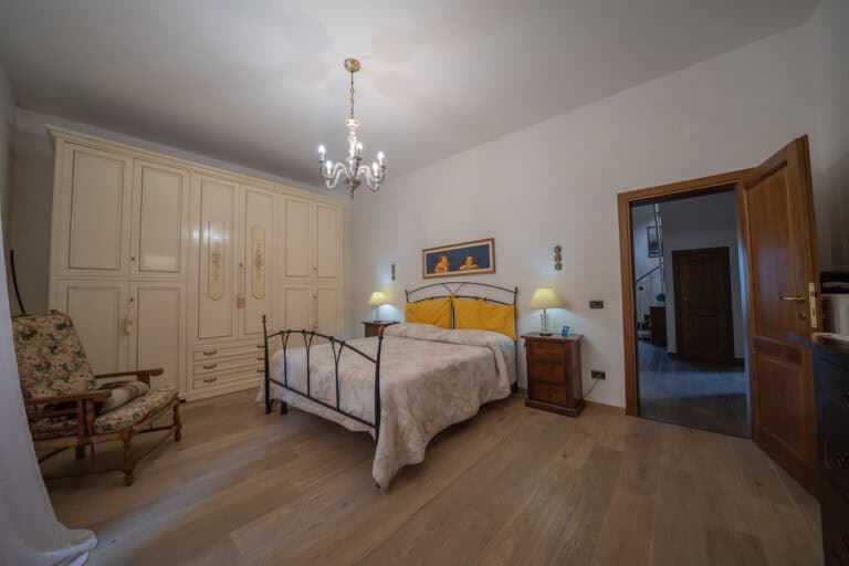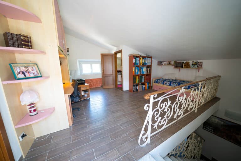 Al piano terra, un ampio loggiato d’ingresso offre scorci incantevoli sulla campagna circostante, introducendovi a un’ampia zona living dominata da un accogliente camino. Sulla sinistra, una cucina dal fascino autentico, completa di un forno a legna tradizionale, invita a serate conviviali. La zona notte ospita tre camere e un bagno, mentre una comoda scala a giorno conduce a una deliziosa mansarda con studio, un’ulteriore camera e un ripostiglio/servizio.