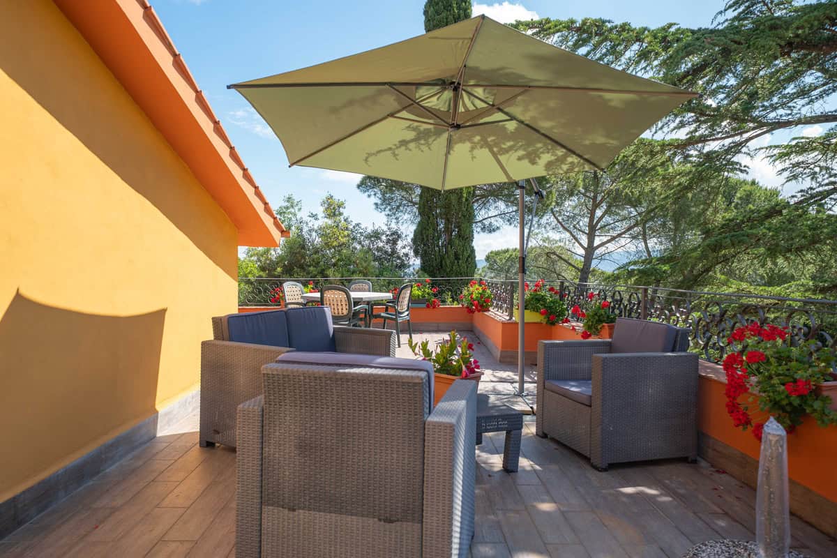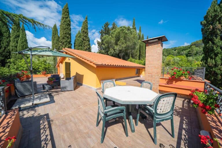 Il vero fiore all’occhiello? Una terrazza panoramica mozzafiato che domina le colline, ideale per ammirare tramonti indimenticabili sorseggiando un vino locale. La proprietà è dotata di riscaldamento GPL/legna e climatizzazione, garantendo il massimo comfort in ogni stagione.