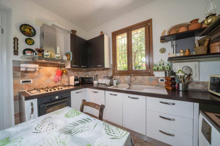 Un suggestivo viale alberato vi accoglie, serpeggiando attraverso 2,5 ettari di parco privato meticolosamente curato. Qui, tra ulivi secolari, una piccola vigna e una fresca pineta mediterranea, scoprirete un’oasi di pace e riservatezza. La villa, recentemente ristrutturata con attenzione ai dettagli, si estende su circa 170 mq e riflette un’armonia perfetta tra tradizione e design moderno.