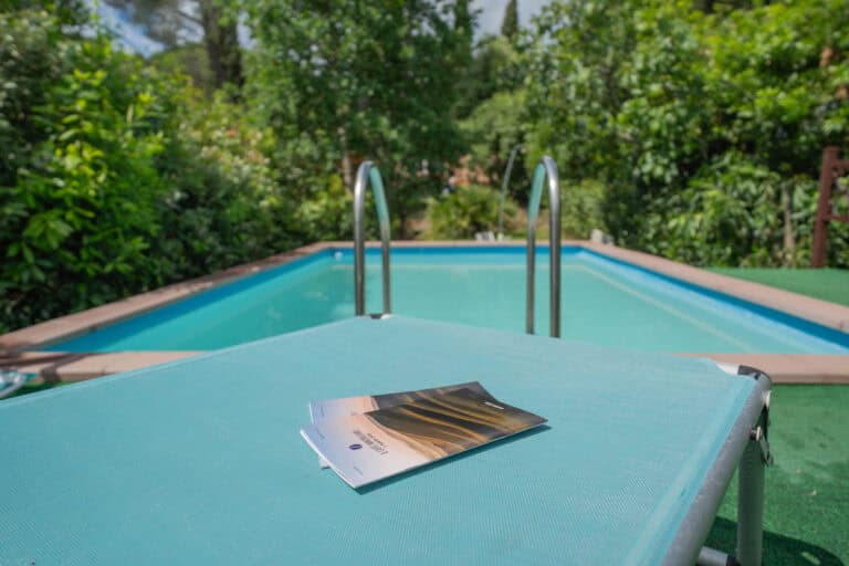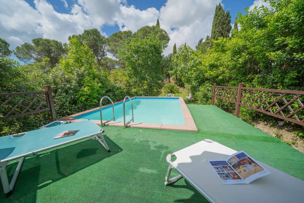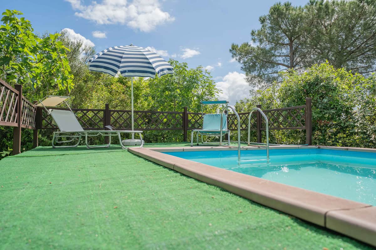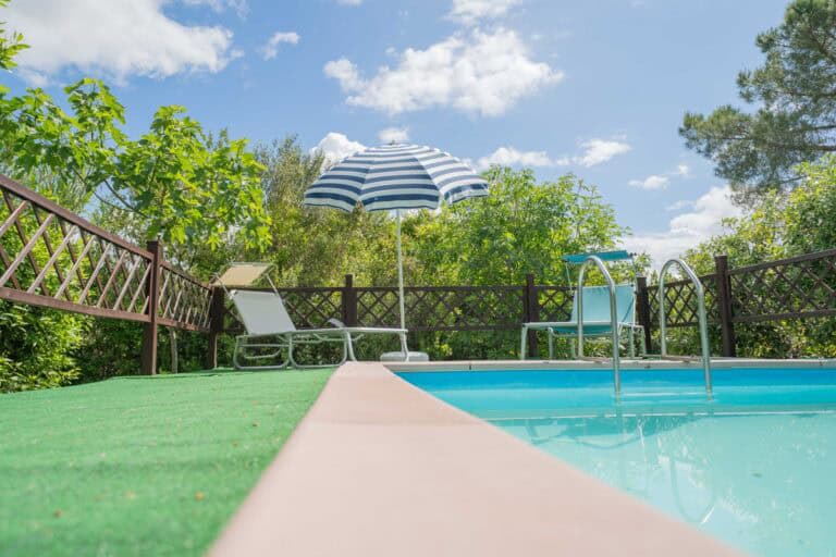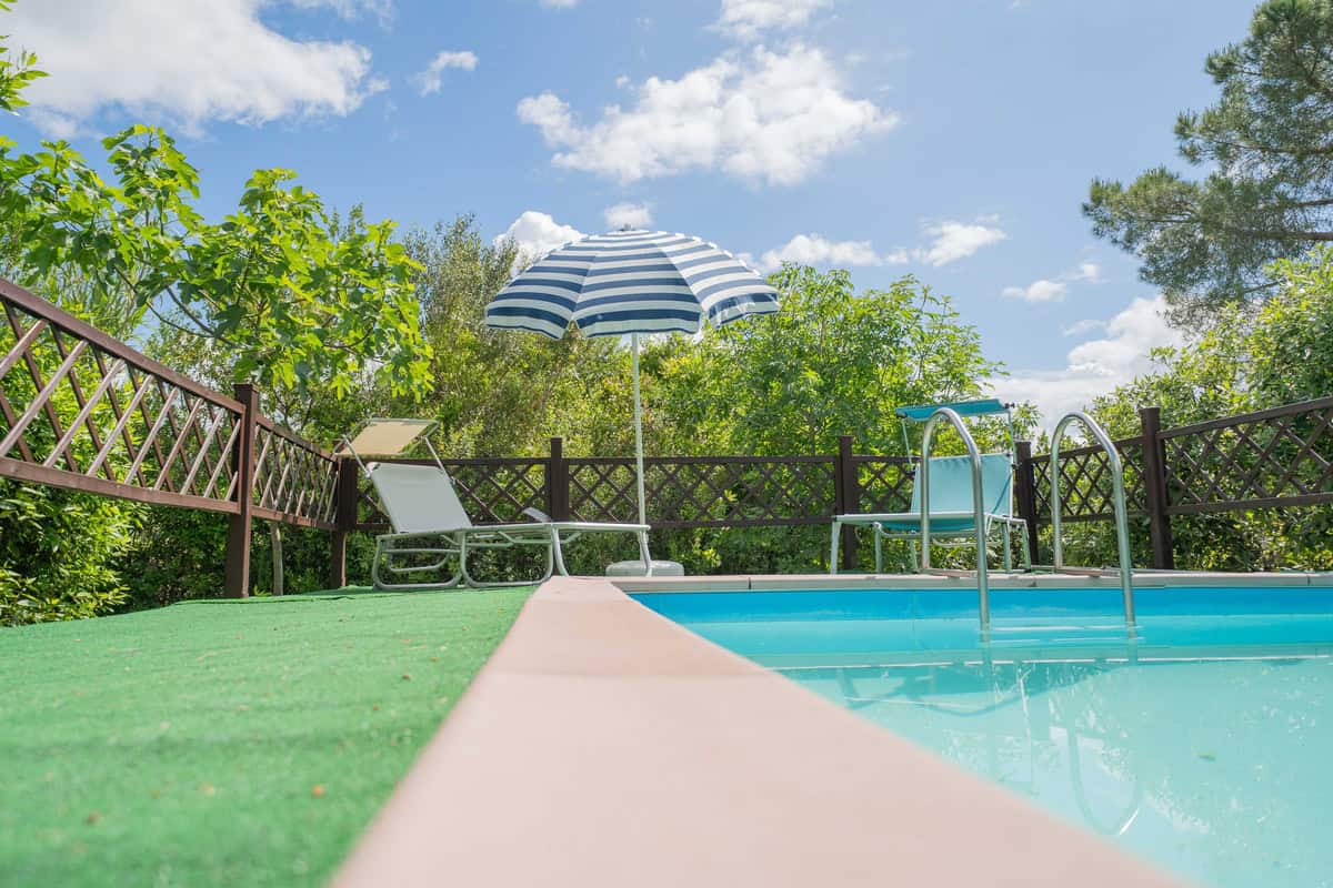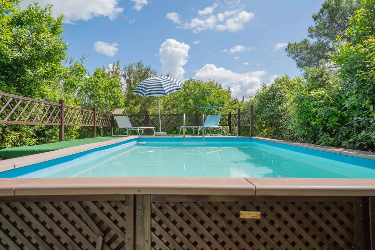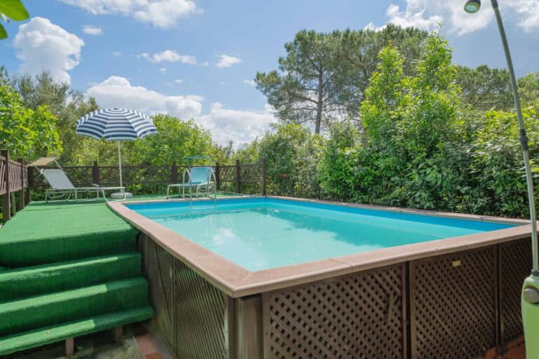Il parco è arricchito da due pozzi, una piscina fuori terra per rinfrescarsi nelle calde giornate estive e un comodo carport con impianto fotovoltaico da 3 kW.